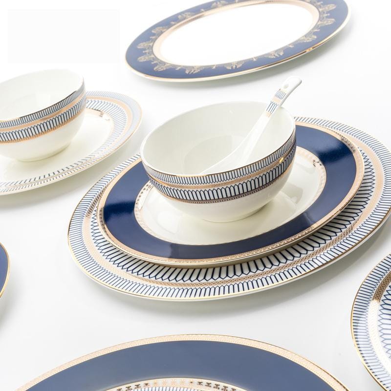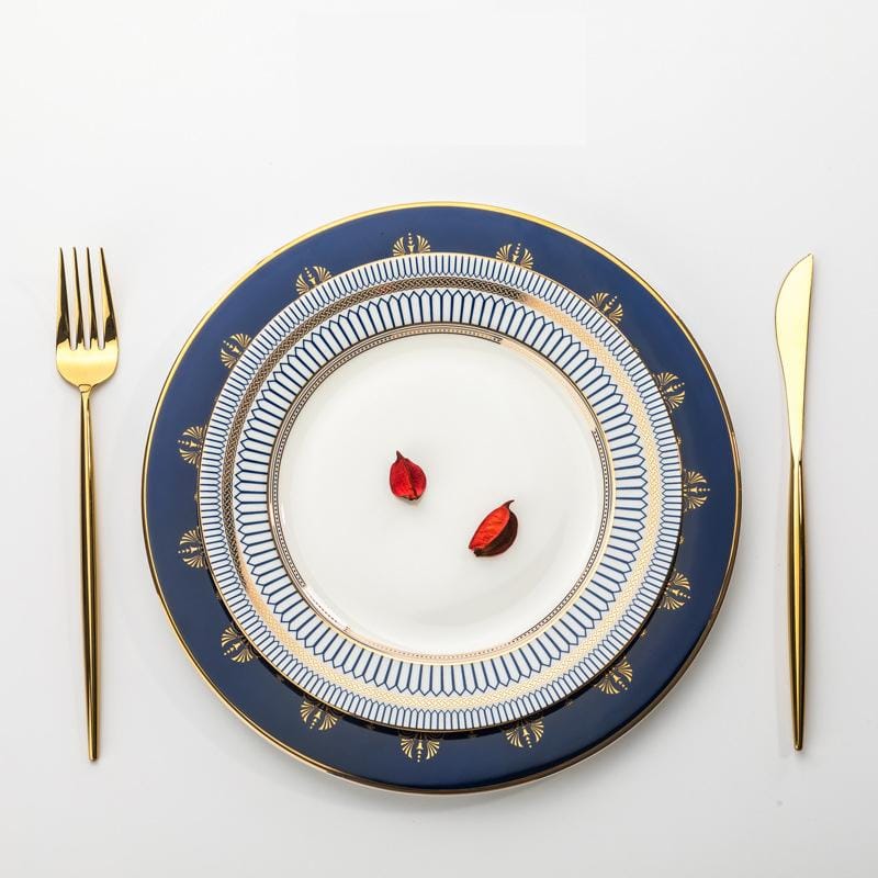 Elegant Nordic 10-inch bone china dinnerware with gold rim, crafted by a trusted supplier, serves restaurants and bulk wholesalers with durable design.