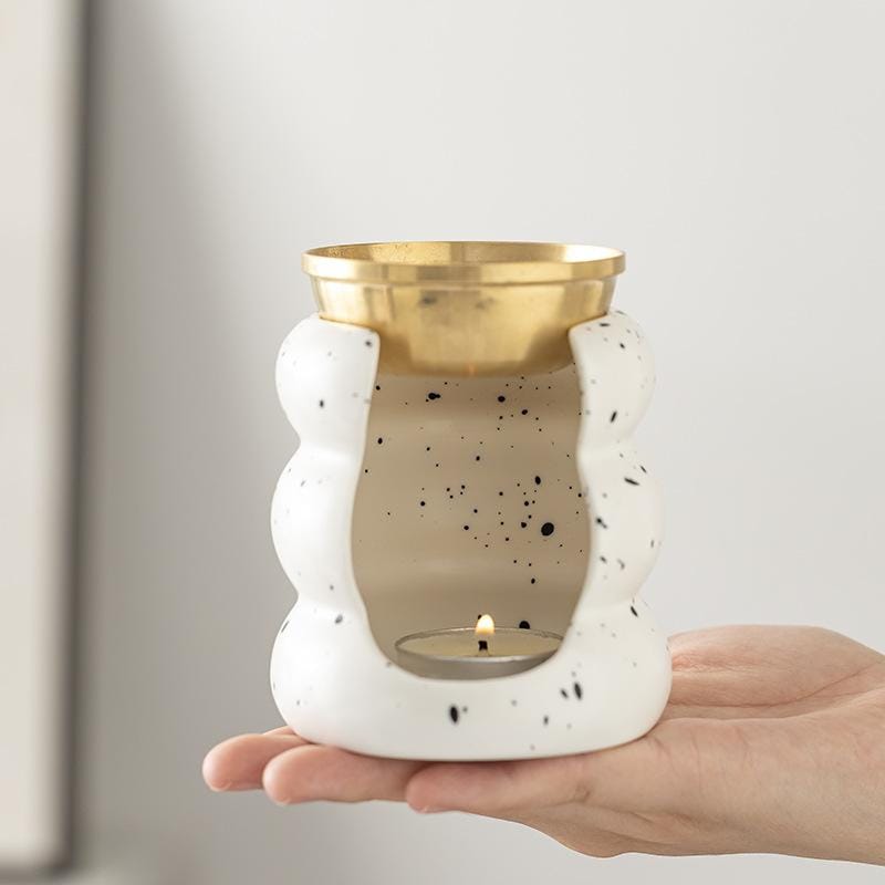 Durable fashionable ceramic aroma burner with candle holder, crafted by a trusted supplier, enhances spa and bulk wholesaler decor with customizable design.