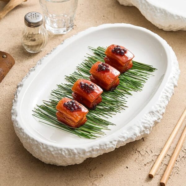 Eco-friendly oval porcelain dinner plate in 12/14/16 inches, supplied by a reliable manufacturer, enhances restaurant and bulk wholesaler dining.